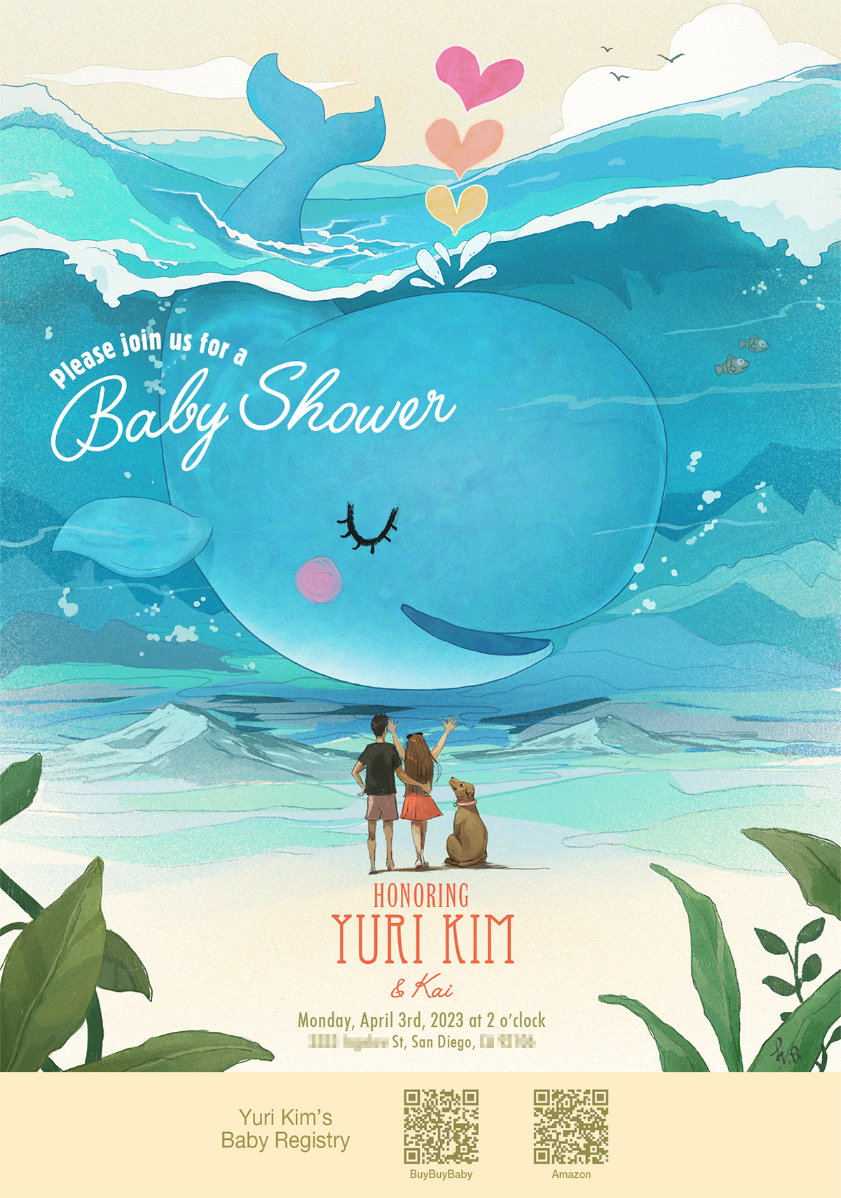 クジラをモチーフにした招待状制作をご依頼いただきました。